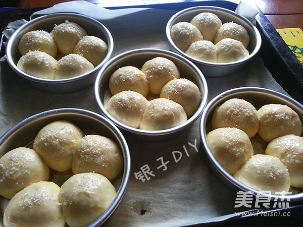 二次發(fā)酵好的生胚,再涂上剩余的蘸料,撒上椰蓉